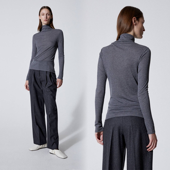 YUNCHI Solid Color High Neck Slim Fit Long Sleeved Lyocell Knitted Thin Women's Base Shirt Top 90% Lyocell+10% Spandex