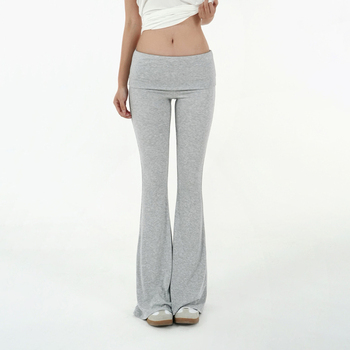 YUNCHI 6602 donna con flangia a vita in maglia a costine modale Micro svasato elastico Casual